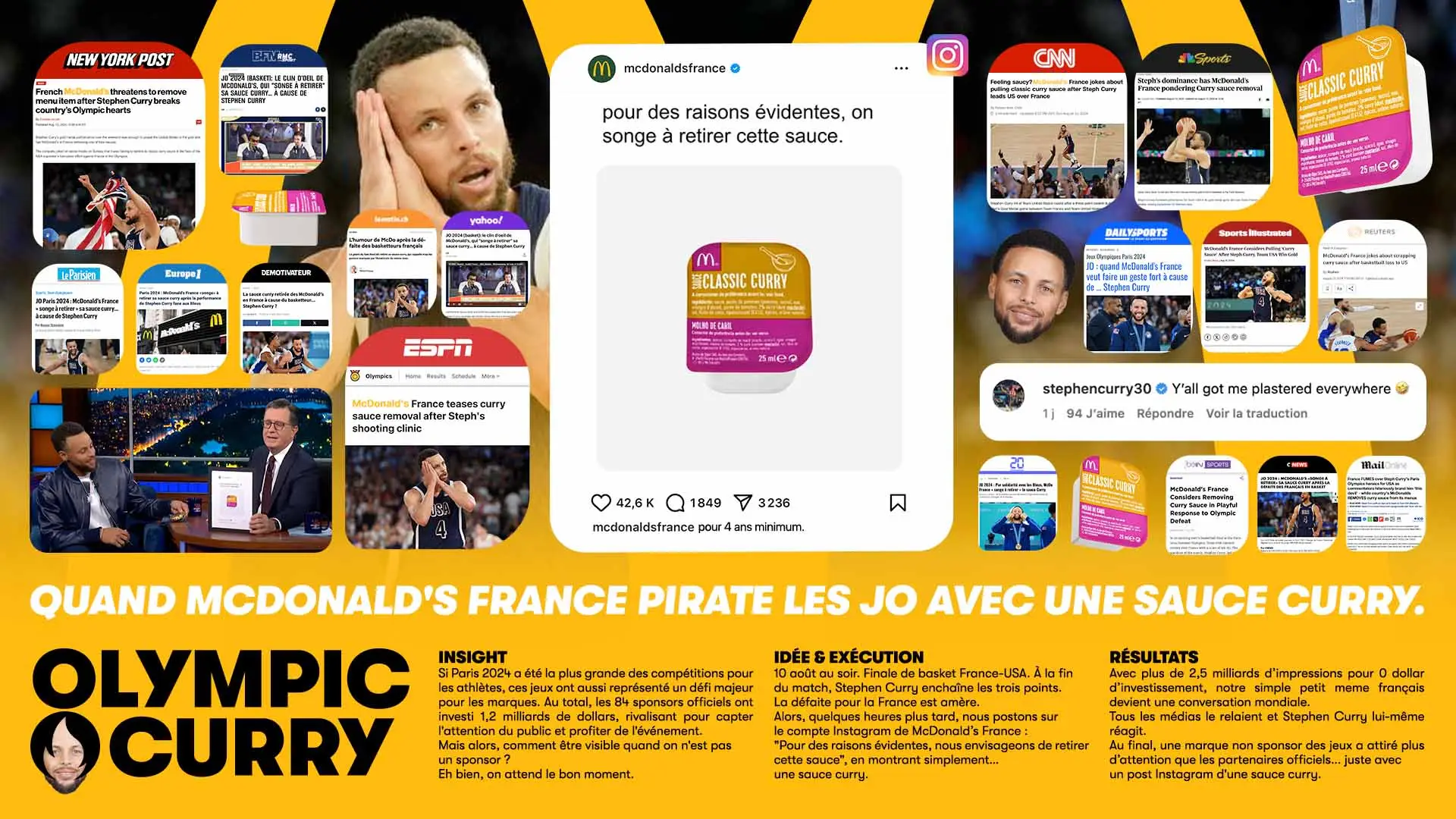 On August 10, during the France–USA basketball final, Stephen Curry hit three-pointers back-to-back and led his team to victory. A few hours later, McDonald’s France posted on Instagram. One image. One product. A curry sauce. With the line: “For obvious reasons, we’re thinking of removing this sauce.”