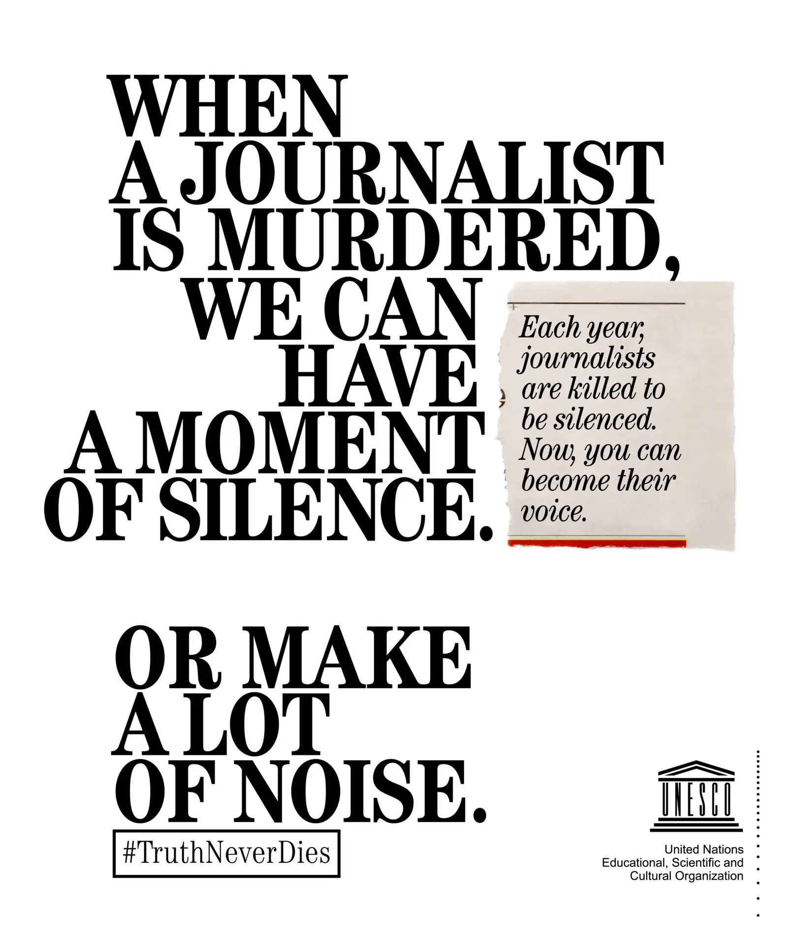 Released for the International Day to End Impunity for Crimes against Journalists, it ran across press, social media and a dedicated platform. A simple way to refuse silence and keep the truth alive.